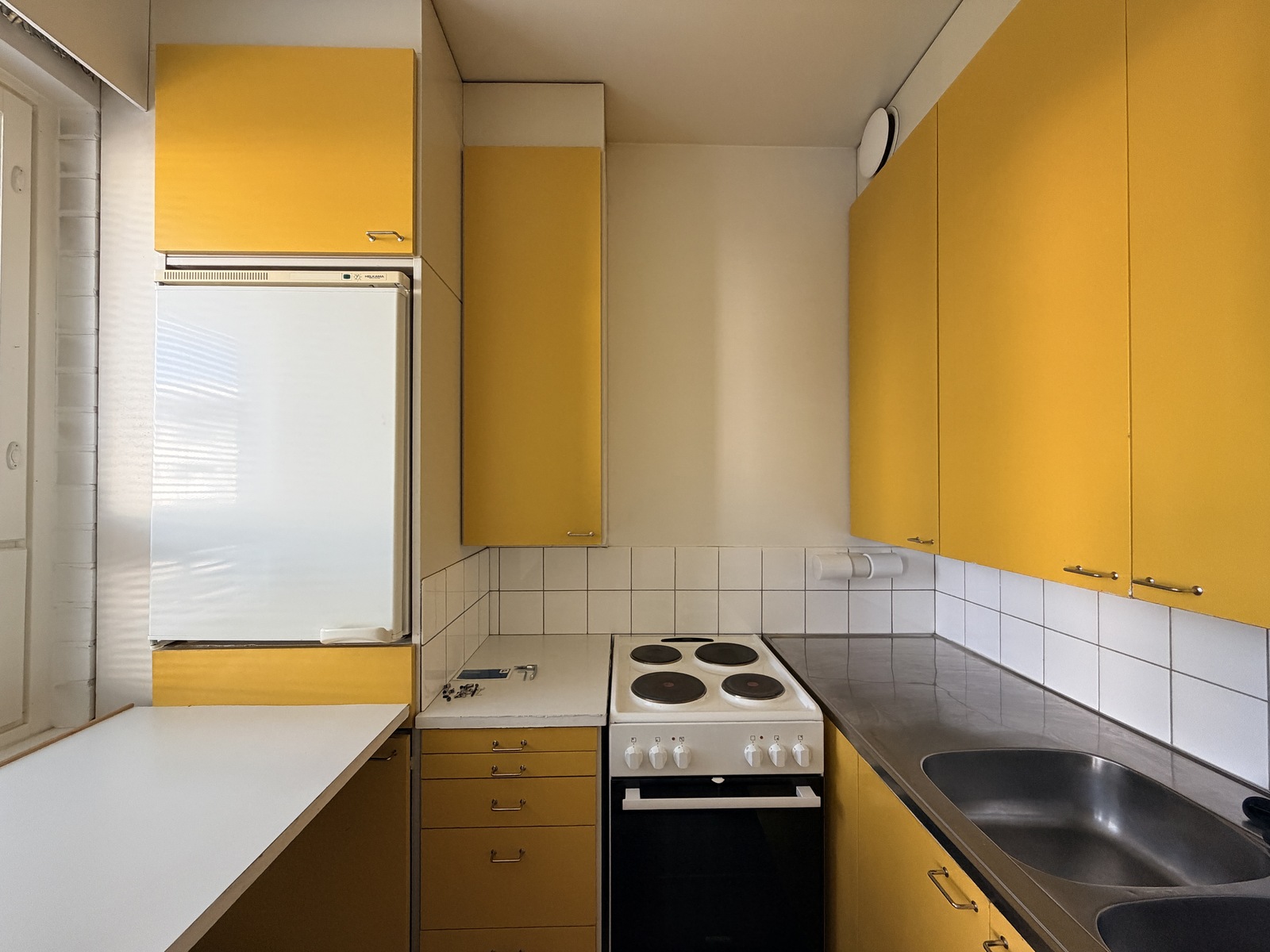 Siistikuntoinen toisen asuinkerroksen tilava yksiö. Huoneiston lattiat vaaleaa laminaattia ja seinäpinnat maalattu. Kylpyhuone remontoitu vesieristeineen ja laatoitettu. Keittiön ja eteisen kiintokalusteissa haluttu säilyttää rakennusajan tunnelmaa, mutta nämä toki päivitettävissä tarpeen mukaan. Huoneiston ikkunat ja parveke sisäpihalle/itään.