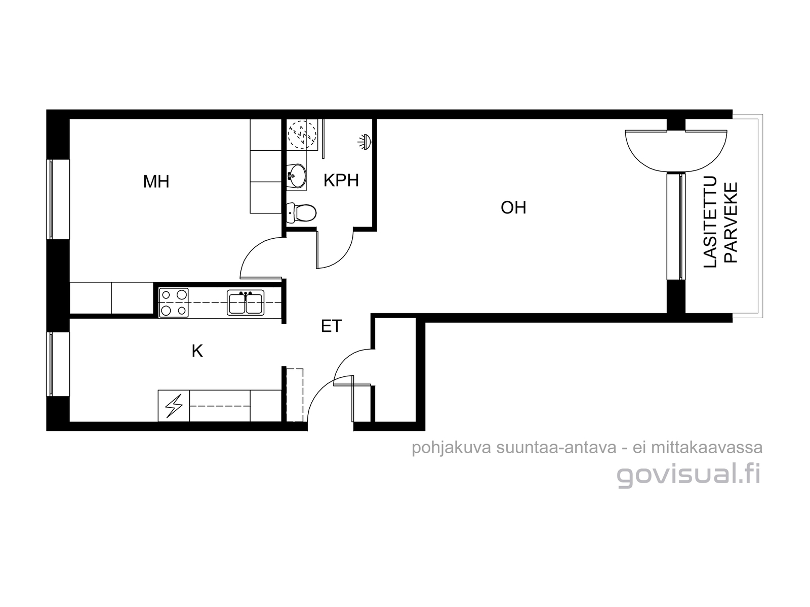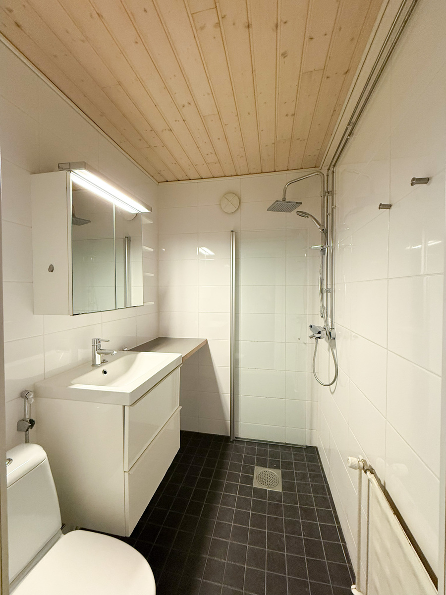 Tämä siistikuntoinen ensimmäisen kerroksen koti tarjoaa selkeän ja toimivan pohjaratkaisun. Keittiö on omassa rauhassaan, ja sinne mahtuu kätevästi pieni ruokailuryhmä. Makuuhuoneessa on hyvin säilytystilaa kaapistoin, jonka lisäksi eteisen yhteydessä on vaatehuone. Kylpyhuone on remontoitu vuonna 2014, ja se on varustettu pesukoneliitännällä. Tilava olohuone mahdollistaa monipuolisen kalustamisen, ja sieltä on käynti länsisuuntaiselle lasitetulle parvekkeelle.