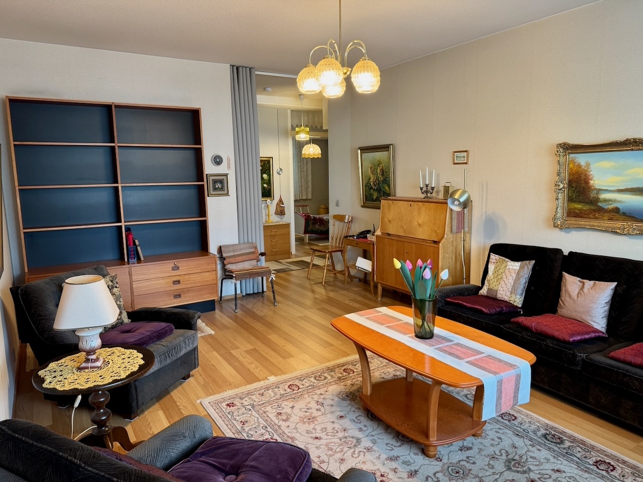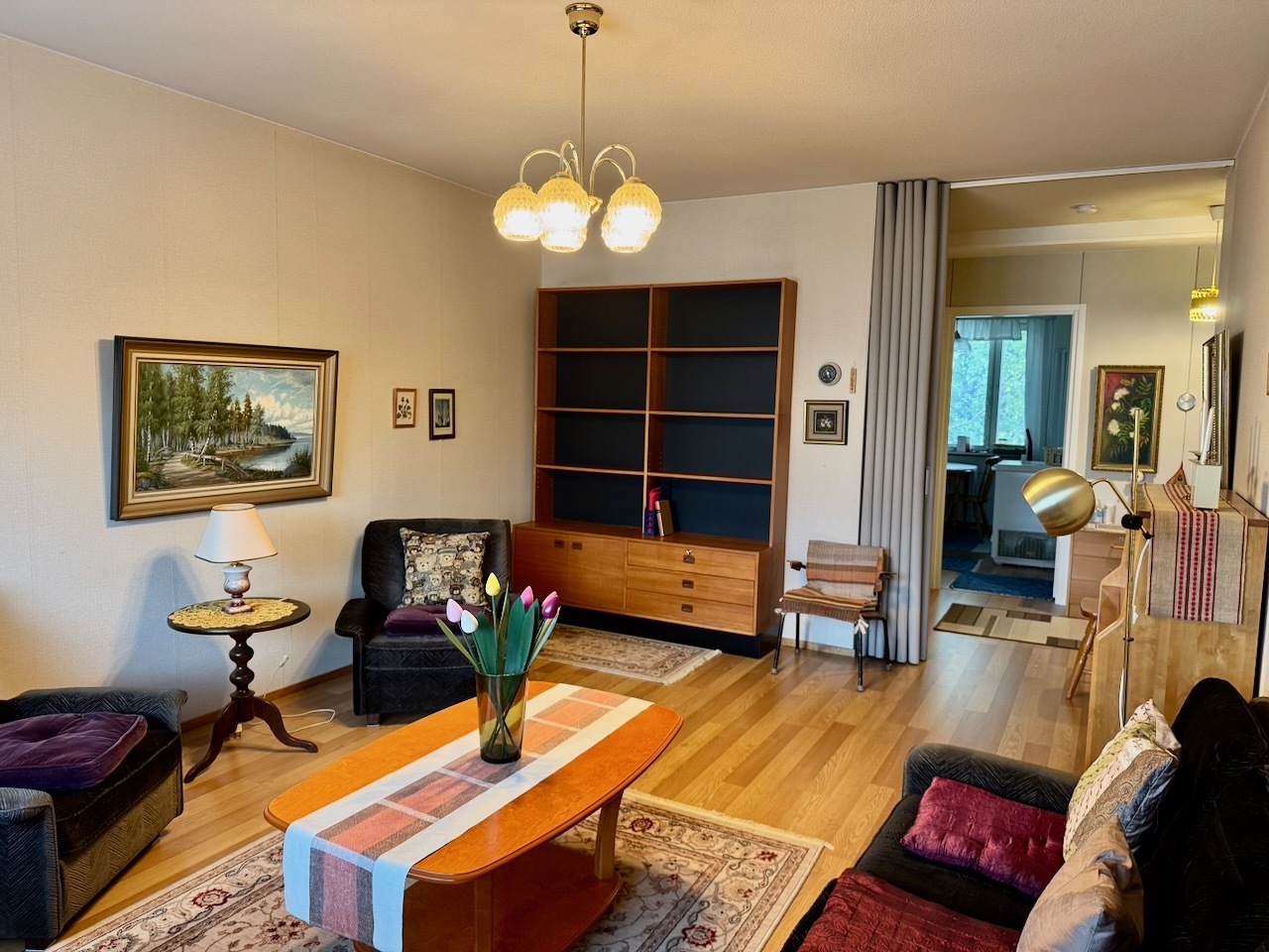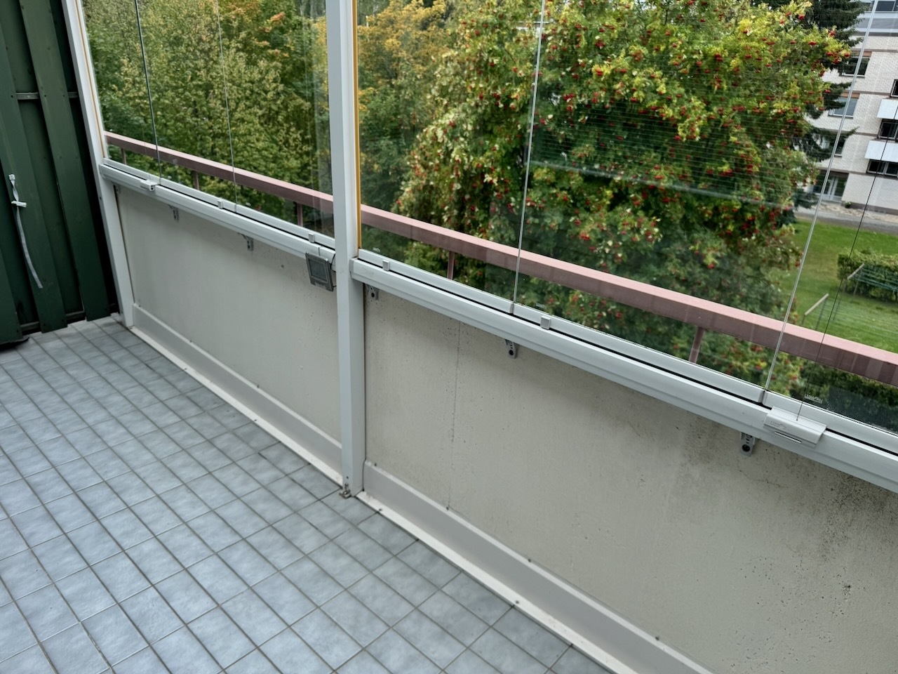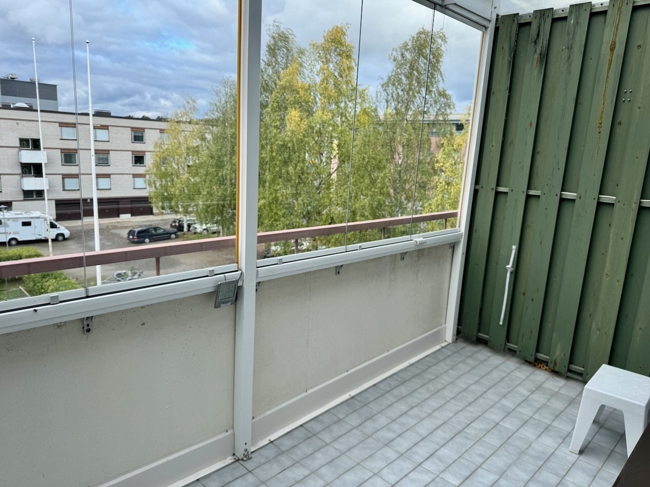 Asunnossa on tilava olohuone, josta pääsee koko huoneiston levyiselle lasitetulle ja katetulle parvekkeelle. Länteen avautuva parveke sijaitsee rauhallisen ja vehreän sisäpihan puolella. Siellä pääset nauttimaan vaikkapa iltateet samalla, kun saat ihailla kaunista auringonlaskua.