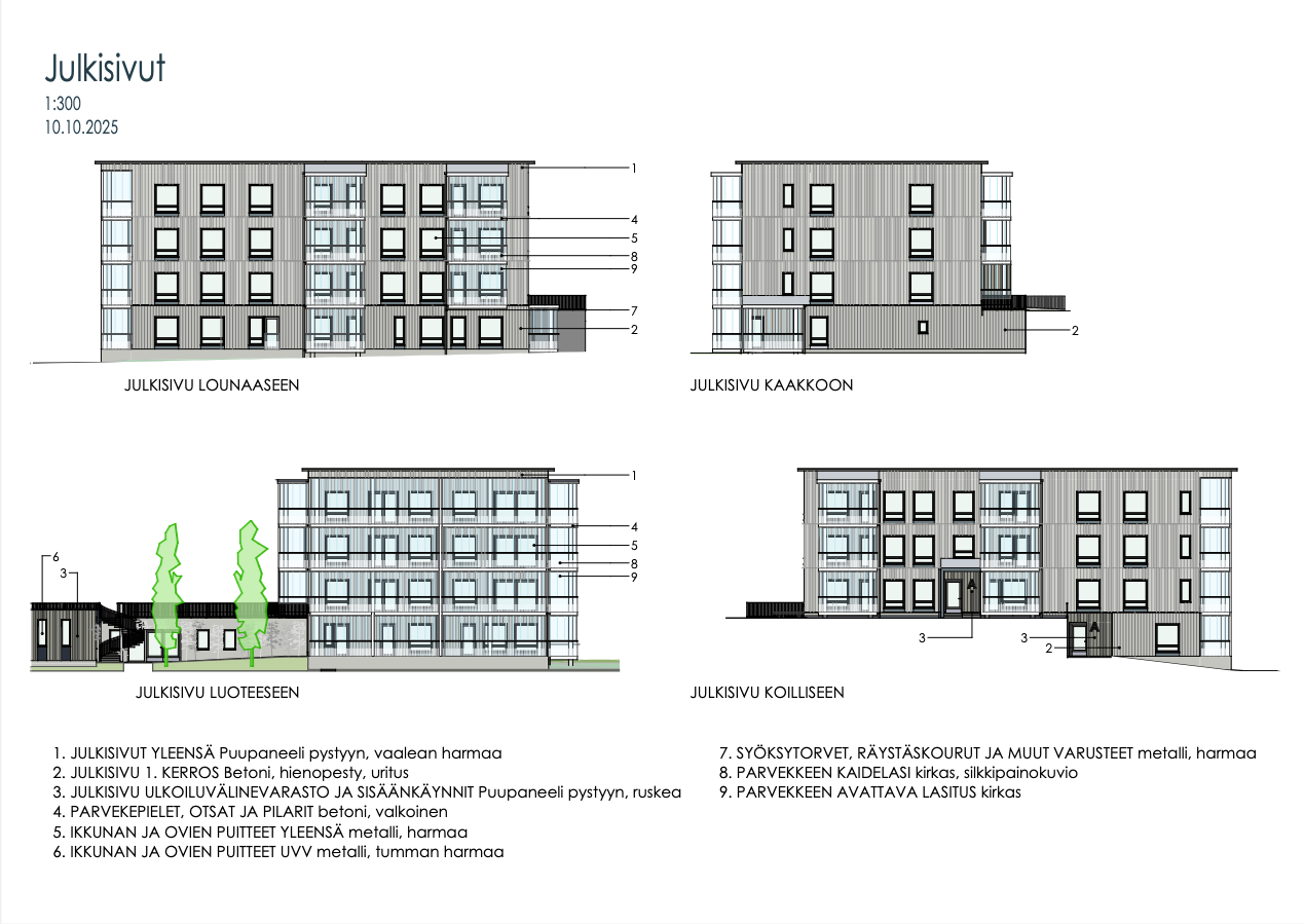 Asuntovalikoima ulottuu näppäristä yksiöistä neljän huoneen huoneistoihin. Kaikissa huoneistoissa on parkettilattiat ja maalatut seinäpinnat, ja ennakkomarkkinoinnin aikana varaajilla on laajat mahdollisuudet vaikuttaa pintamateriaaleihin. Lisäksi ennakkoon varattuihin huoneistoihin sisältyy veloituksetta ilmalämpöpumppu sekä muuttoa helpottava muuttopalvelu*.