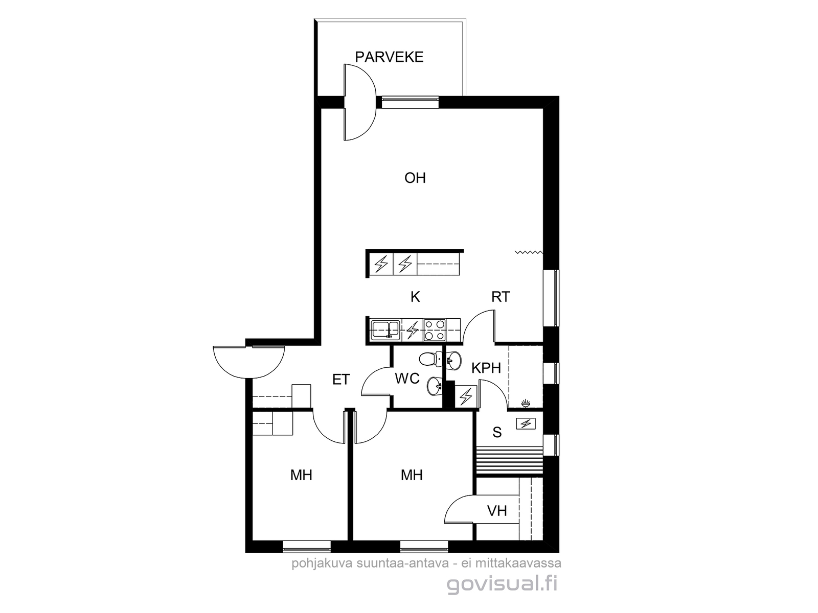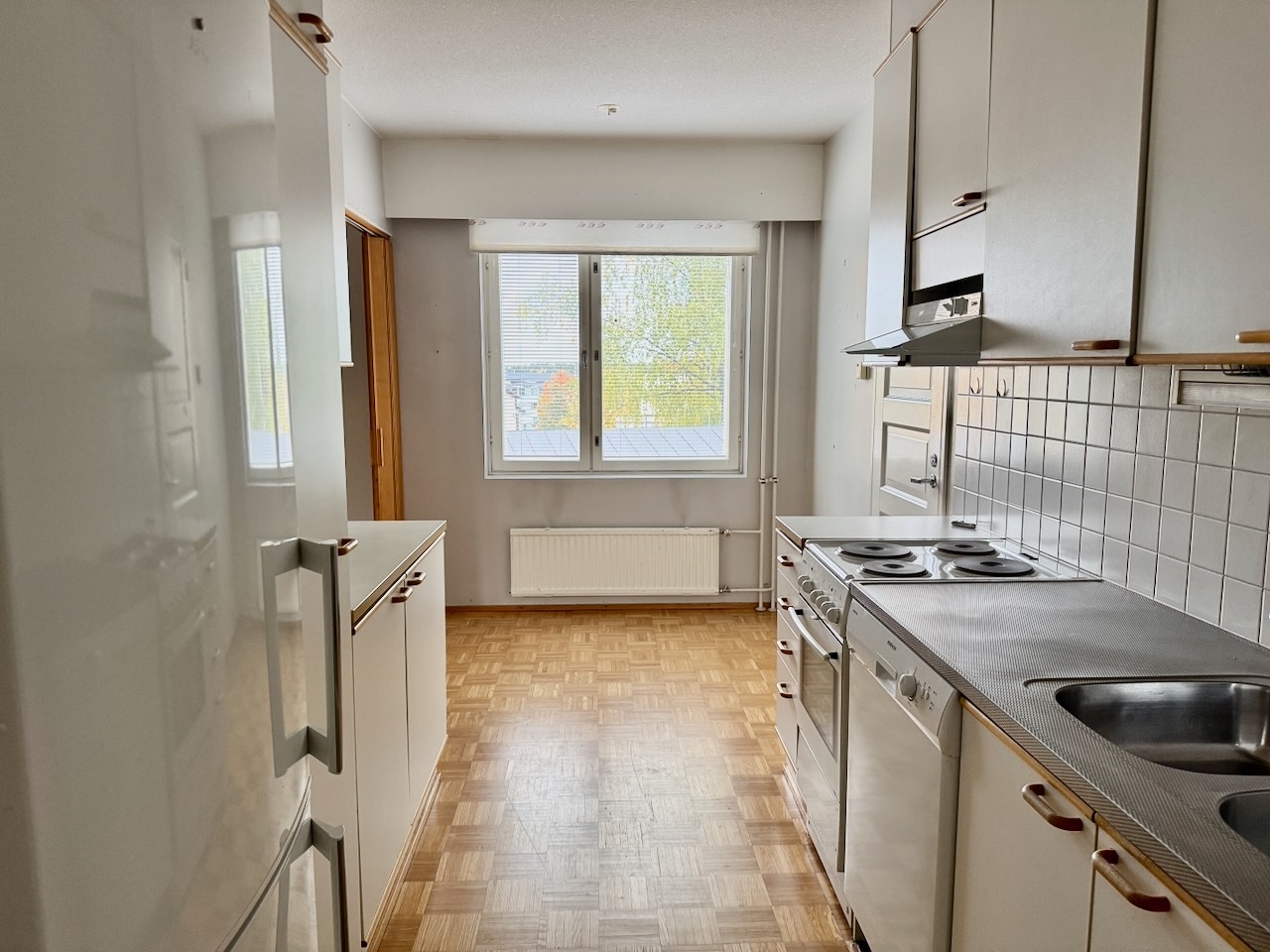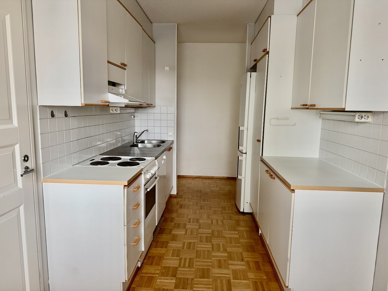 Tämän asunnon keittiössä on hyvin kaappi- ja laskutilaa. Säilytystilaa löytyy sekä eteisestä, että molemmista makuuhuoneista. Ensimmäisessä makuuhuoneessa kaapistot ja toisen yhteydessä tilava vaatehuone. Asunnossa on myös oma ikkunallinen sauna, joten pääset rentoutumaan löylyihin milloin haluat. Tilavasta olohuoneesta on käynti parvekkeelle, jossa voit vilvoitella ilta-auringon laskiessa. Eteisessä sijaitsee erillinen wc.