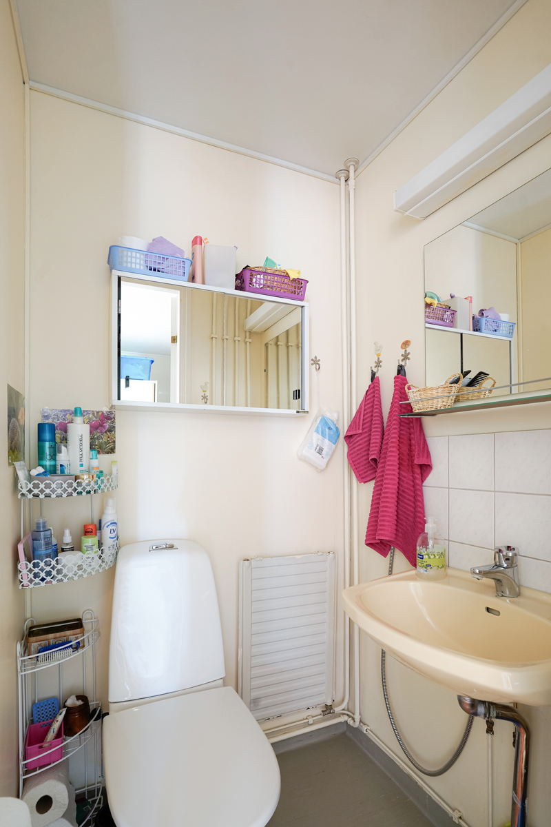 Lattiat ovat palaparkettia, ja seinäpinnat on viimeistelty osin maalilla, osin tapetein. Kylpyhuone on kaakeloitu ja varustettu sähköisellä lattialämmityksellä, ja saunassa on ikkuna tuomassa luonnonvaloa. Lämmitysmuotona taloyhtiössä on kaukolämpö, josta lämpö jaetaan huonetiloihin vesikiertoisilla pattereilla.