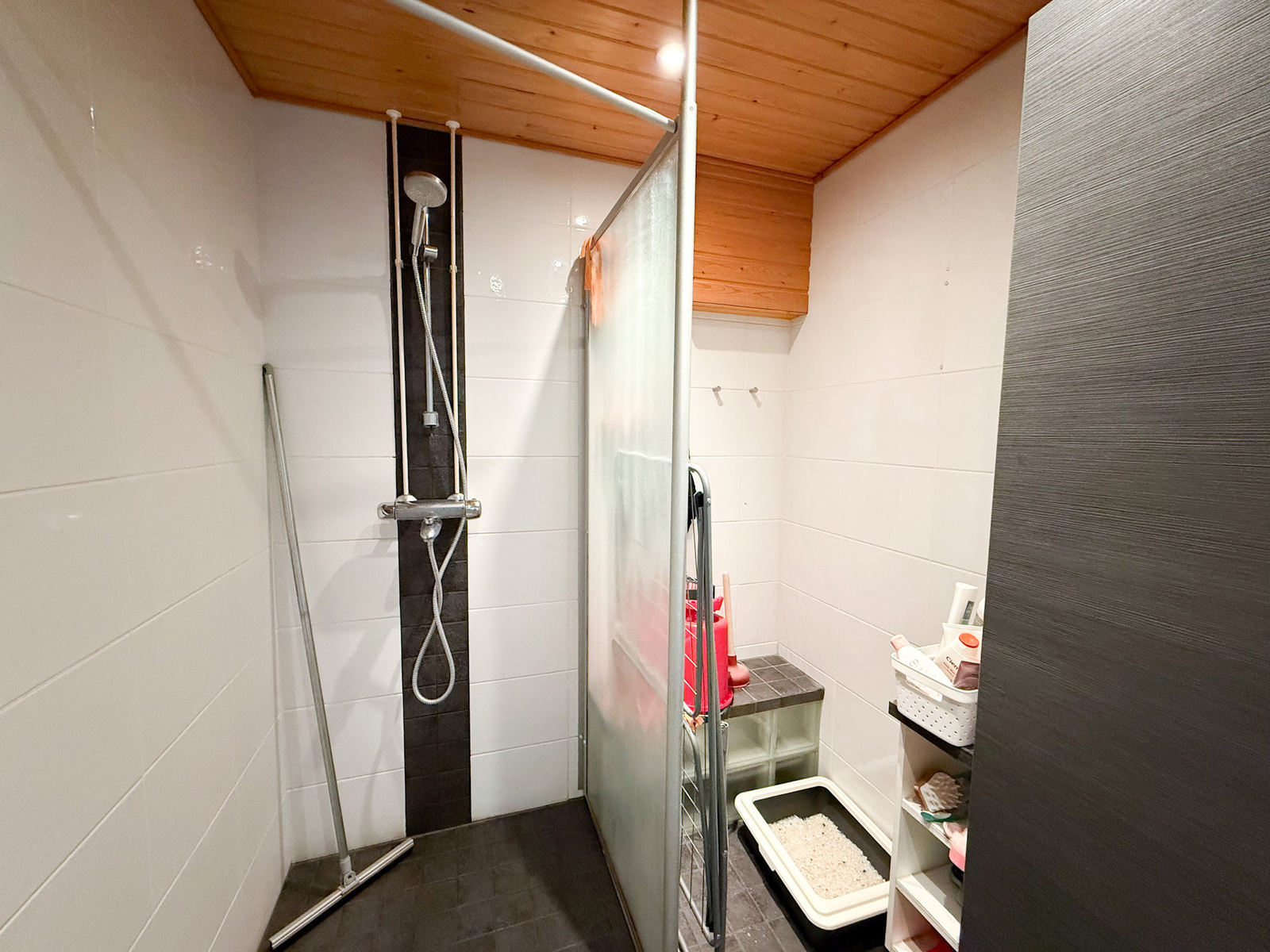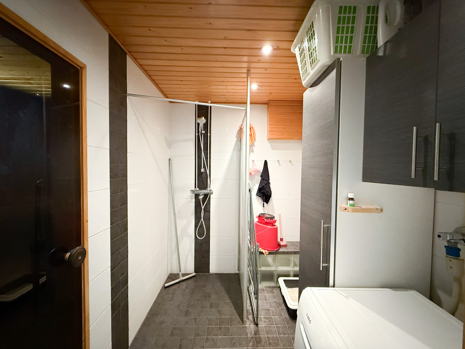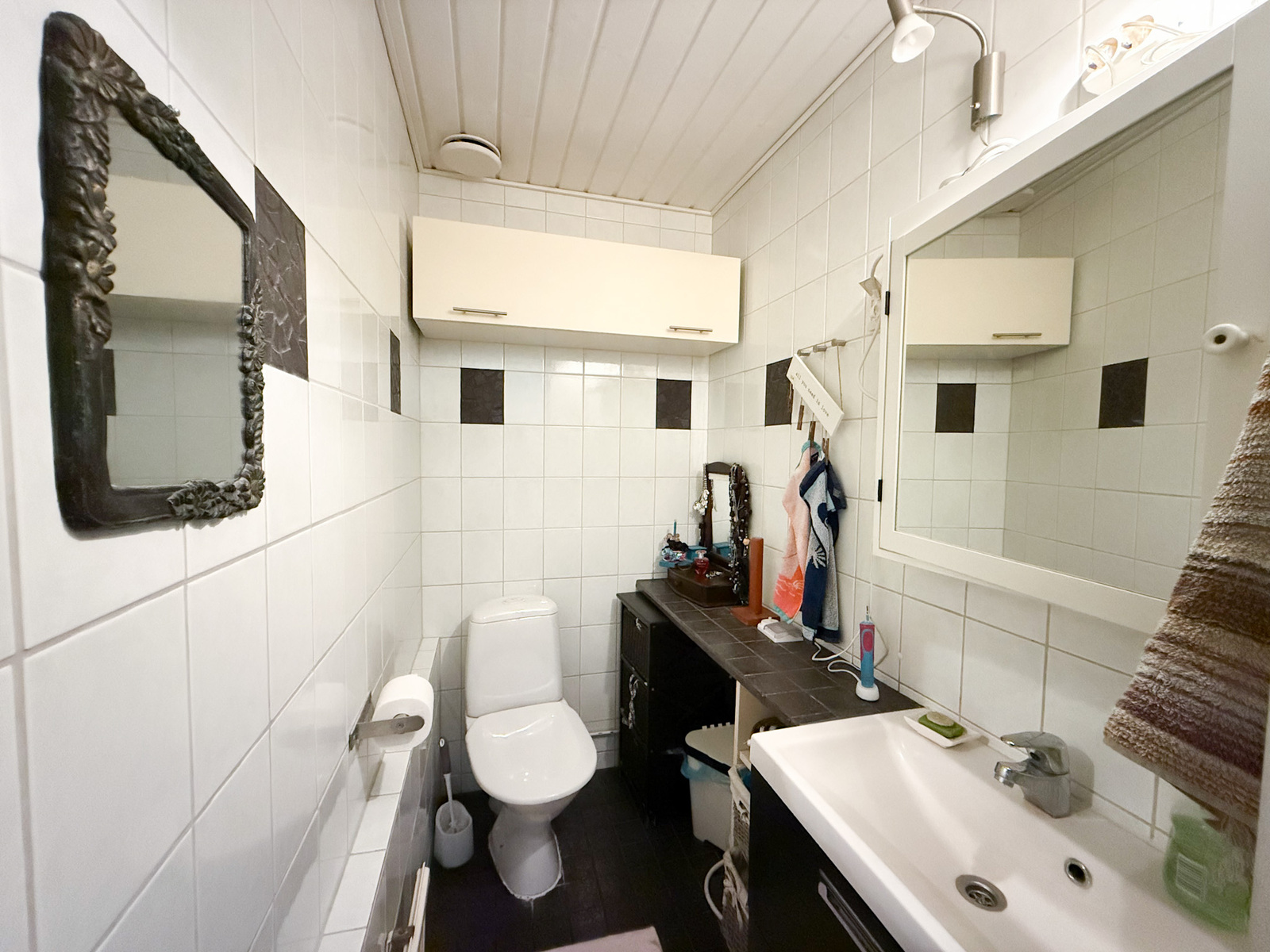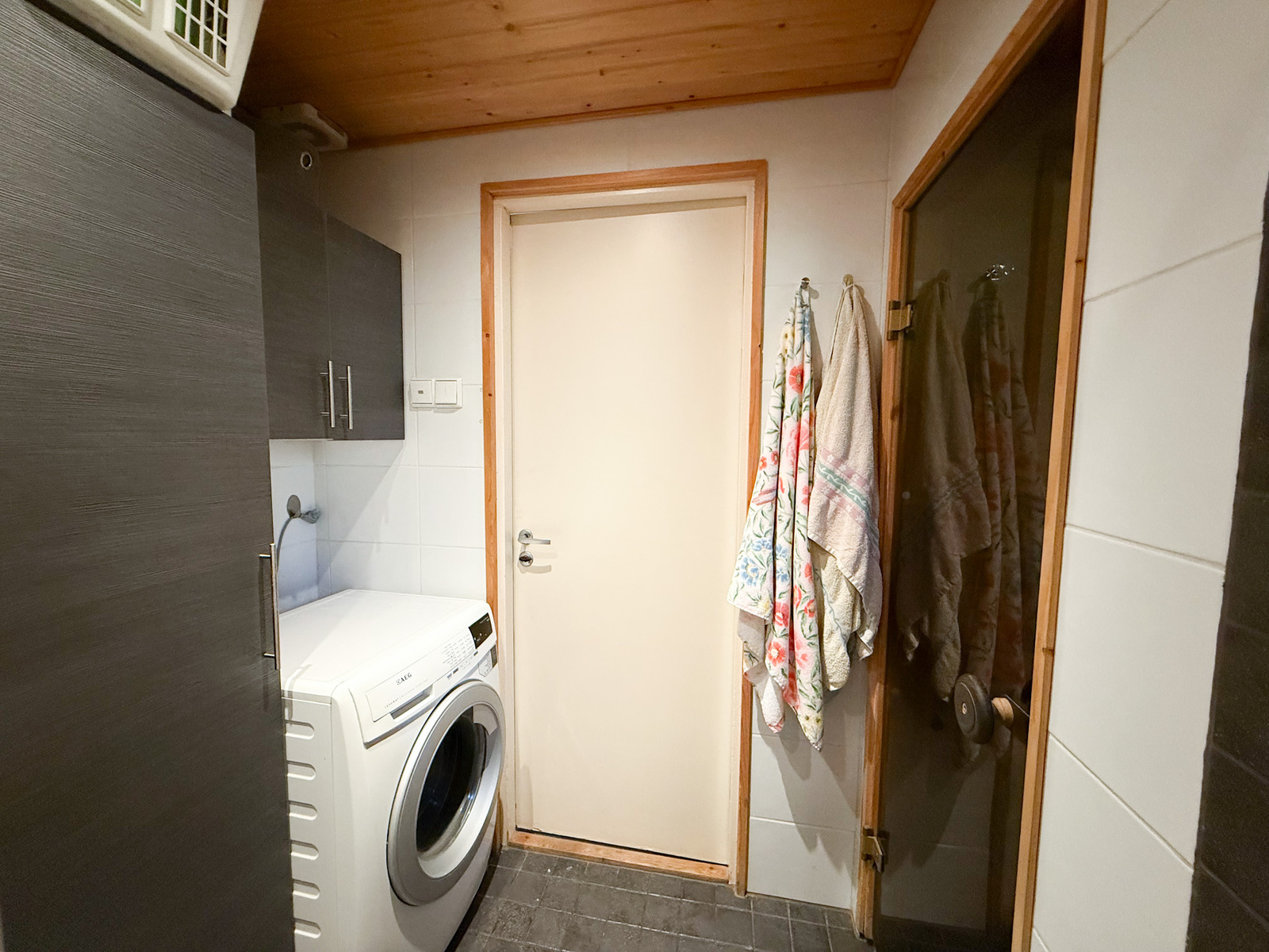Huoneiston lattiat ovat pääosin parkettia, yhdessä makuuhuoneessa laminaattia ja eteisessä sekä keittiössä käytännöllistä laattaa. Kylpyhuone on remontoitu ja varustettu lattialämmityksellä sekä pesukoneliitännällä. Rentoutumishetkiin oma sauna tarjoaa arjen luksusta. Lisäksi asunnossa on erillinen wc makuuhuoneiden läheisyydessä. Keittiö omana tilanaan, jonka yhteyteen sopii ruokailuryhmä.
