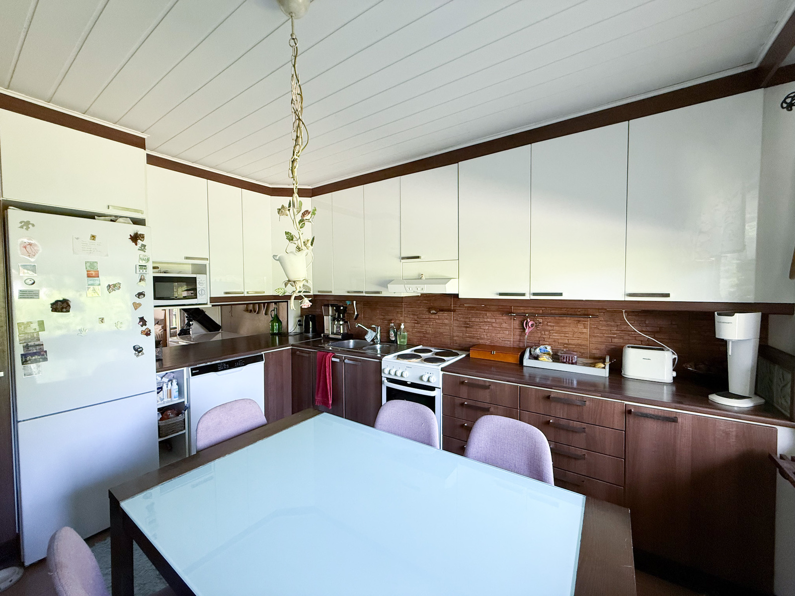 Puiston laidalla sijaitseva, vuonna 1973 valmistuneessa rivitaloyhtiössä oleva 93 m² päätyhuoneisto tarjoaa mukavaa asumista rauhallisessa ympäristössä. Tässä kolmella makuuhuoneella varustetussa kodissa on tilaa niin perheelle kuin väljemmistä tiloista haaveilevalle pariskunnalle.