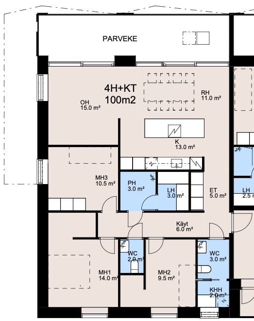 Huoneistojen suunnittelussa on panostettu toimiviin pohjaratkaisuihin ja korkeaan laatuun. Huonekorkeus on noin 2,9 metriä (poislukien alaslasketut kattopinnat), mikä lisää ennestään tilan tuntua. Keittiöissä integroidut kodinkoneet sulautuvat tyylikkäästi kalusteisiin, ja kolmioita suuremmissa huoneistoissa erillisuuni sekä liesitaso sijoitettu saarekkeeseen. Lattiat ovat parkettia ja seinäpinnat maalatut. Ostajilla on mahdollisuus vaikuttaa pintamateriaaleihin sisustusarkkitehdin avustuksella, ja markkinoinnin alkuvaiheessa myös pohjaratkaisuihin voidaan tehdä muutoksia.