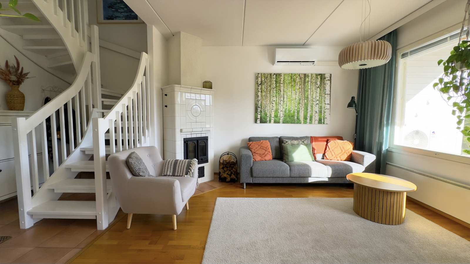 Asumismukavuutta lisäävät ilmalämpöpumppu, varaava takka ja varaava lattialämmitys, jotka pitävät kodin lämpimänä ja asumiskustannukset kurissa. Taloyhtiön rauhallinen ja suojaisa piha-alue tarjoaa lapsille turvallisen leikkipaikan ilman liikenteen ääniä.