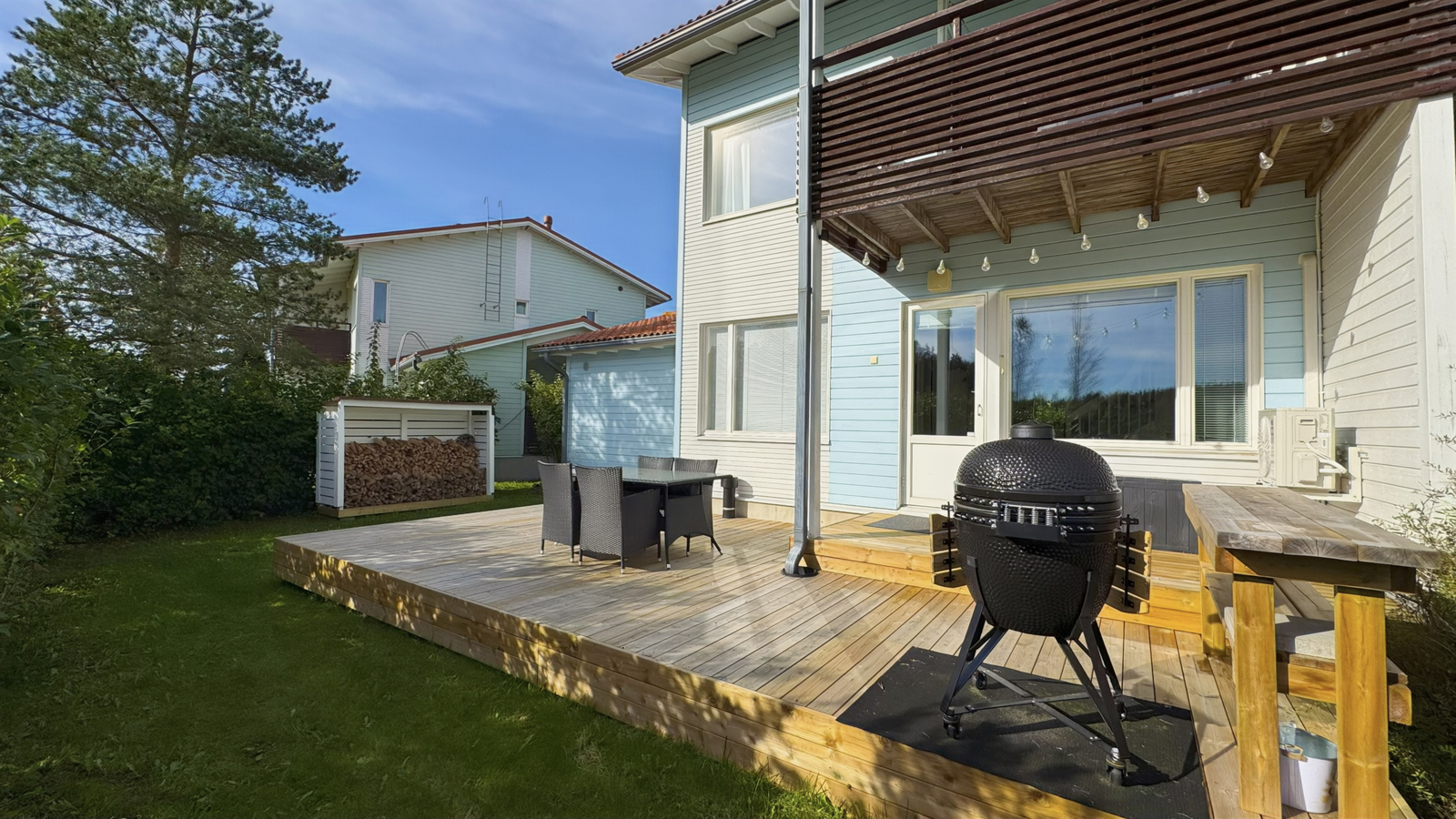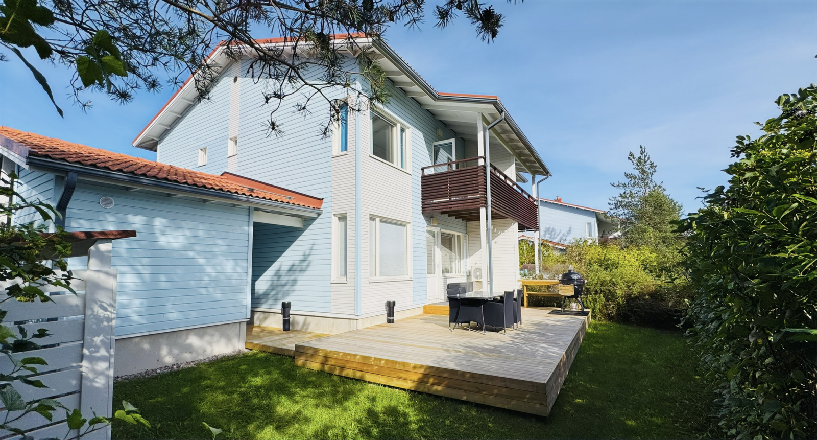 Suojaisa piha, iso terassi ja kaksi autopaikkaa (sähköauton latausmahdollisuus)