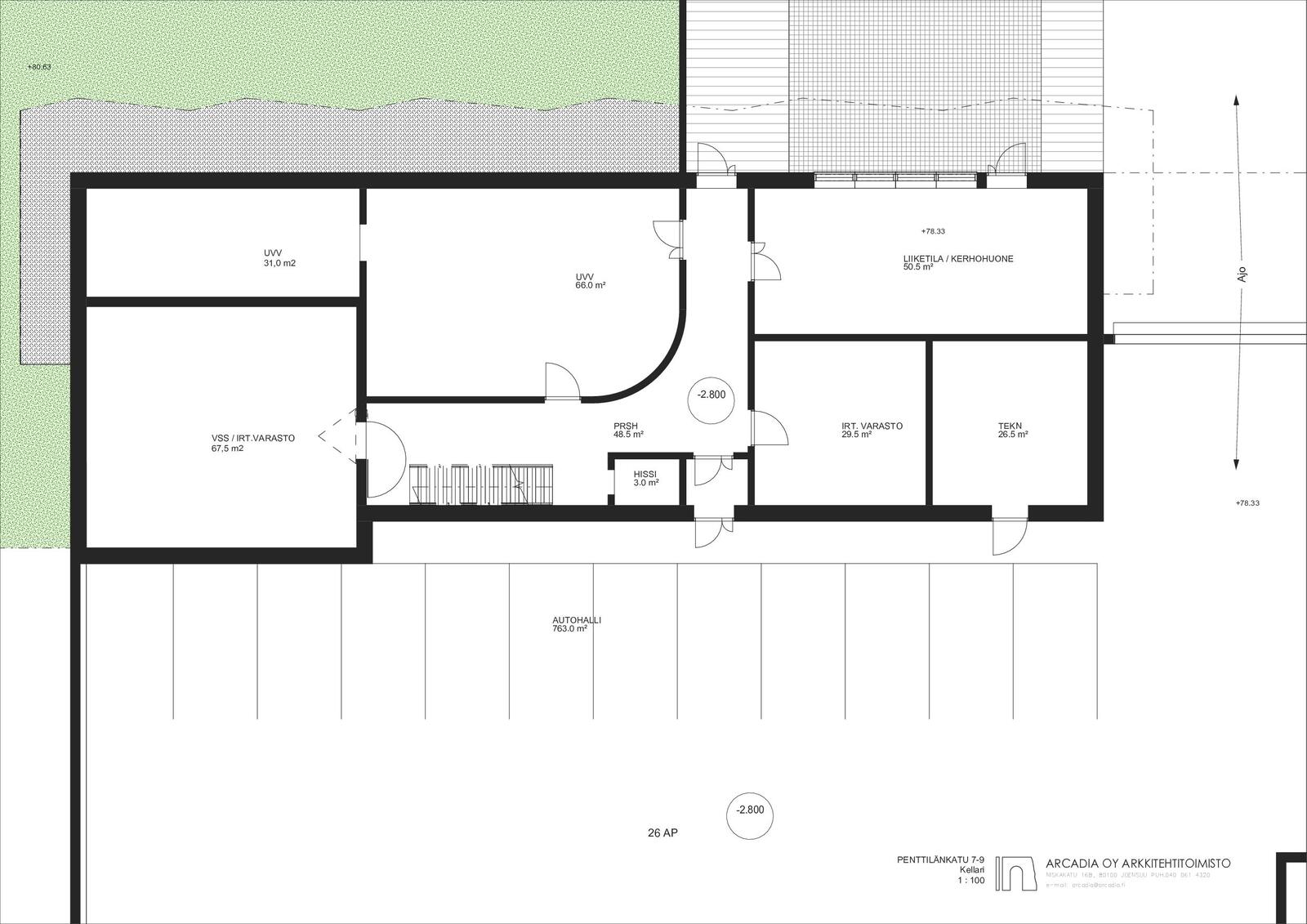 Autohallipaikat myydään erillisinä osakkeina. Paikkoja on yhteensä 50, joista 25 sijaitsee rakennuksen alla ja 25 viereisessä, Suvantosillan alapuolella sijaitsevassa autohallissa. Rakennuksen alla olevissa autohallipaikoissa on valmius sähköauton lataukseen.